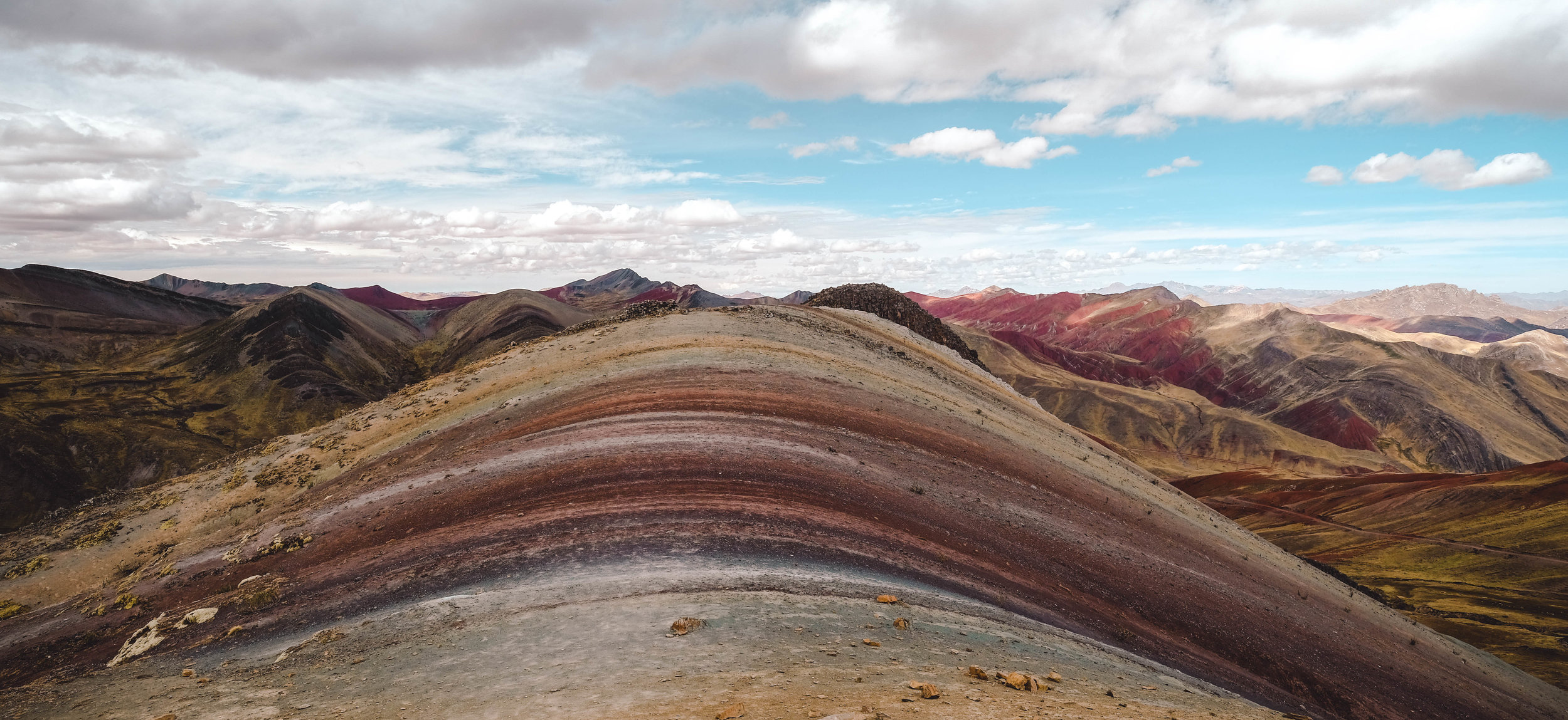 The next day I’m up again at the crack of dawn to head to Palcoyo - known as the alternative to the famous “Rainbow Mountain” (Vinicunca). I decided to do Palcoyo instead for a bunch of reasons, but, mostly it’s less of an ascension as you can drive most of the way, you get picked up at 6am (instead of 3am) and, most importantly, there are only about 50 tourists a day at Palcoyo compared to about 1000 at Vinicunca. We stop into a cute little village called Checacupe on the way up for some Mate de Coca before another 1200m climb. We get to Palcoyo and true to their word there is only about 10 other people there so when we get to the top it’s literally me and 3 other people…. AMAZING. It’s a shame that right at that moment a bunch of massive clouds come over and the colours are muted but it’s still amazing to be at 5000m altitude and these mountains which are like 6000m just look like little mounds. It literally does feel like you are on top of the world.